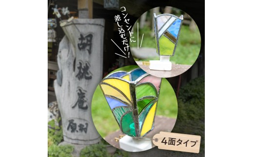 - ステンドグラスのおやすみランプ 2個 セット 【4面型×4面型】| ガラス ライト 手作り コンセント オシャレ ムード 信州 八ヶ岳 長野県 諏訪郡 原村
