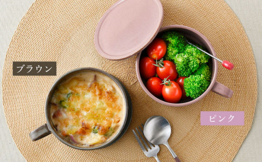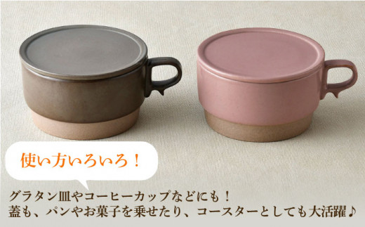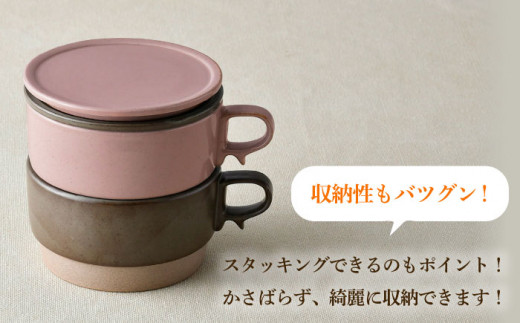 - 【波佐見焼】【オーブン可】スタッキング 蓋つき スープマグ 2点セット ピンク・プラウン マグカップ スープカップ 小皿 食器 皿 【舘山堂】 [RC46]