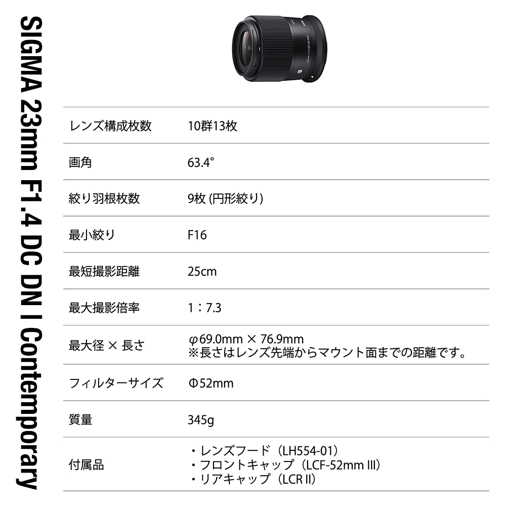 - 【キヤノンRFマウント用】SIGMA 23mm F1.4 DC DN | Contemporary