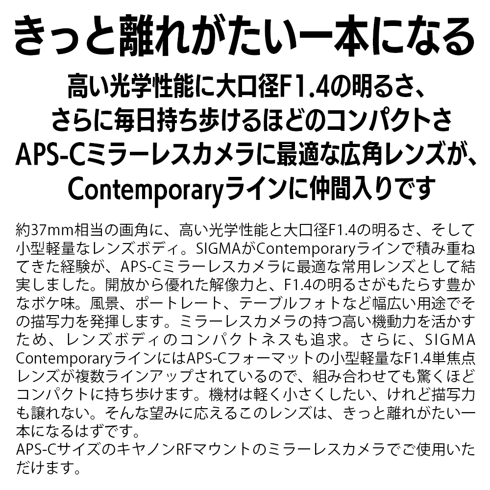 【キヤノンRFマウント用】SIGMA 23mm F1.4 DC DN | Contemporary