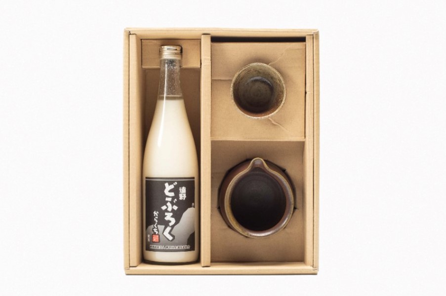 - 遠野どぶろくと酒器のセット【どぶろく特区第一号】 / 薬師窯 宮守川上流生産組合 お酒 にごり酒 濃厚 手作り 無濾過 非加熱 贈答 岩手県 遠野市 宮守町 産 米 使用 穴窯 片口 とっくり お猪口