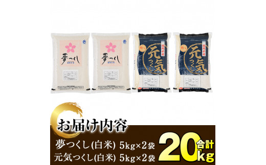 - <令和7年産>福岡県産米食べ比べ<白米>「夢つくし」と「元気つくし」セット(合計20kg・5kg×4袋)お米 20キロ ごはん ご飯【ksg0382】【朝ごはん本舗】