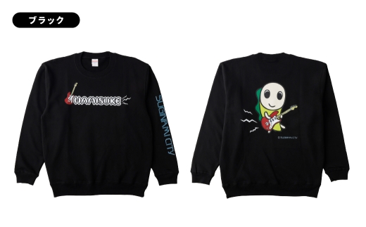 なみすけ クルーネックスウェット ブラック(ギターバージョン)<Sサイズ>【思いやり型返礼品】 クルーネック スウェット 服 洋服 ルームウェア 生地 秋冬コーデ カジュアル パイル素材 人気キャラ 選べるサイズ プレゼント 贈り物
