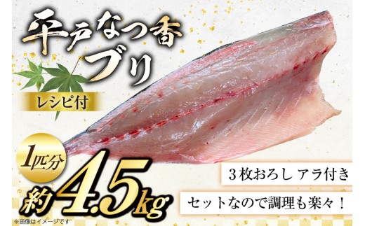- ぶり 刺身 平戸なつ香 ブリ 丸々 1匹 約4.5kg 3枚おろし アラ付き セット [坂野水産 長崎県 平戸市 hr42bgy420503] 鰤 魚介 さかな 刺身用 さしみ 冷蔵 おかず フルーツ魚 夏香 鮮魚 海鮮 鍋 海鮮丼 下処理済 しゃぶしゃぶ ぶりしゃぶ 照焼き