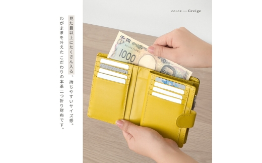- 【本革】二つ折り財布 財布 グレージュ レディース 二つ折 本革 レディース コンパクト 財布 バイカラー 二つ折り財布メンズ 本革 ミニ財布 本革 レザー 小銭入れポケット おしゃれ アットライズ プレゼント 奈良県 奈良市 奈良