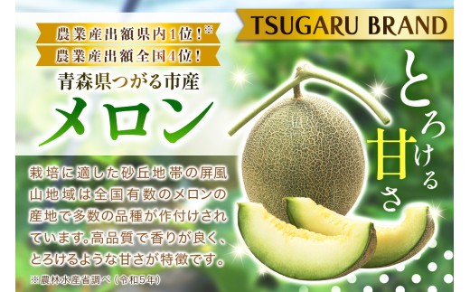 タカミ メロン 約1.8kg×2玉|2026年 令和8年 青森 津軽 つがる産 タカミ メロン めろん 特産 ジューシー 糖度 フルーツ 果物 ギフト 産直 青肉メロン 夏メロン [0858]