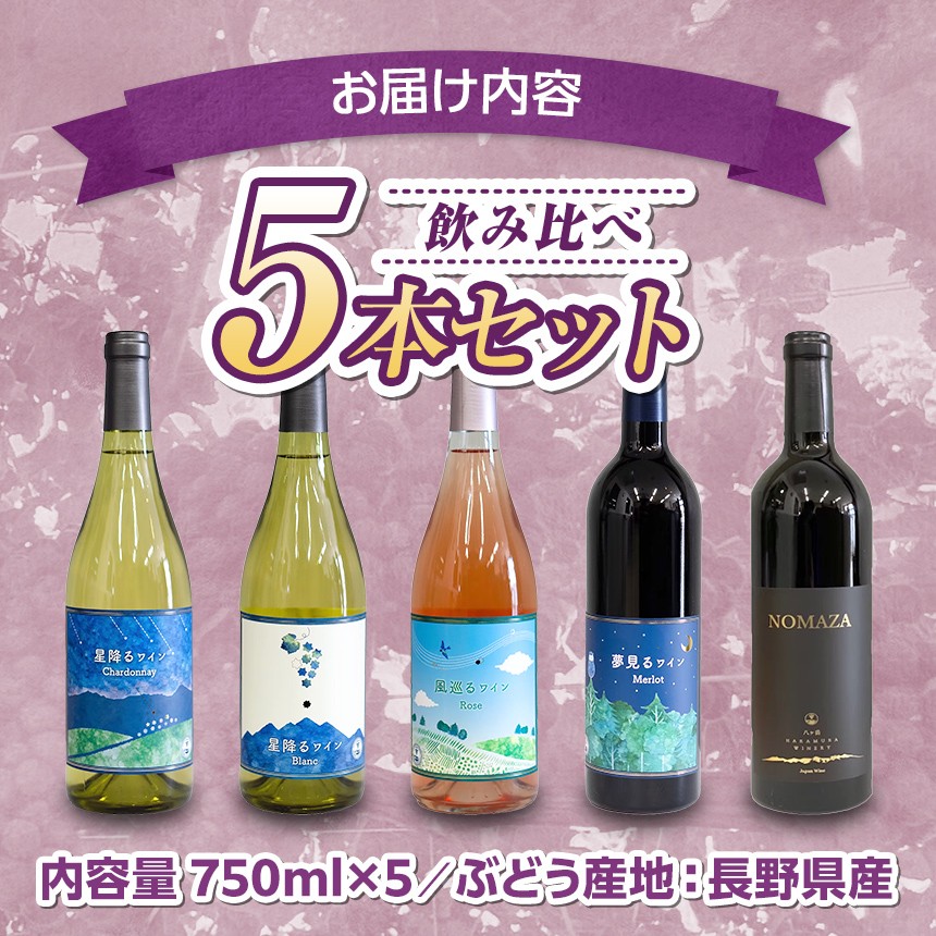 八ヶ岳はらむらワイナリー 飲み比べ 5本セット | 750ml × 5本 酒 ワイン 赤 白 ロゼ アルコール 国産 パーティー 飲み比べ ギフト 肉料理 魚料理 信州 八ヶ岳 長野県 諏訪郡 原村