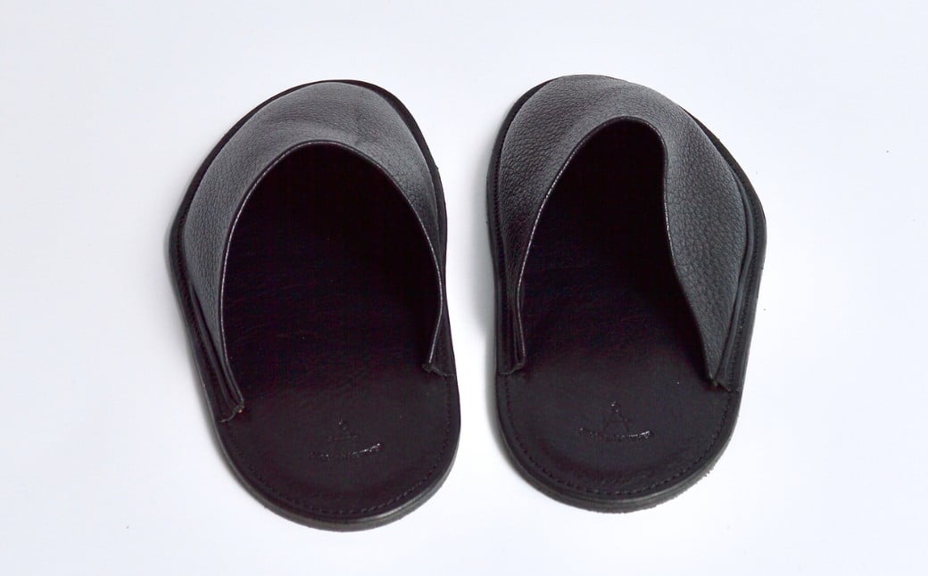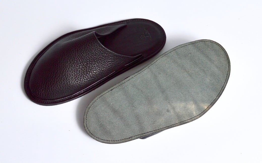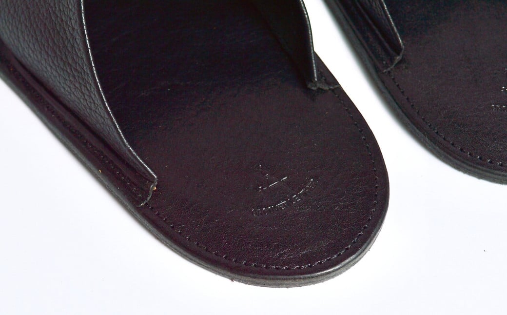 - 信州鹿革:ルームスリッパ(S)/ ブラック| 本革スリッパ レザー ルームシューズ あんず染め 千曲市 長野県産 信州