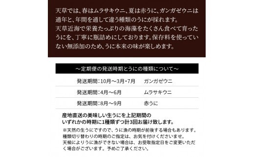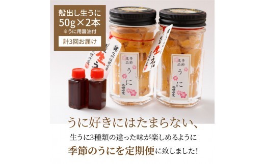 - S002-007_【定期便3回】季節ごとに変わる 殻出し生うに 50g×2本 うに用醤油付