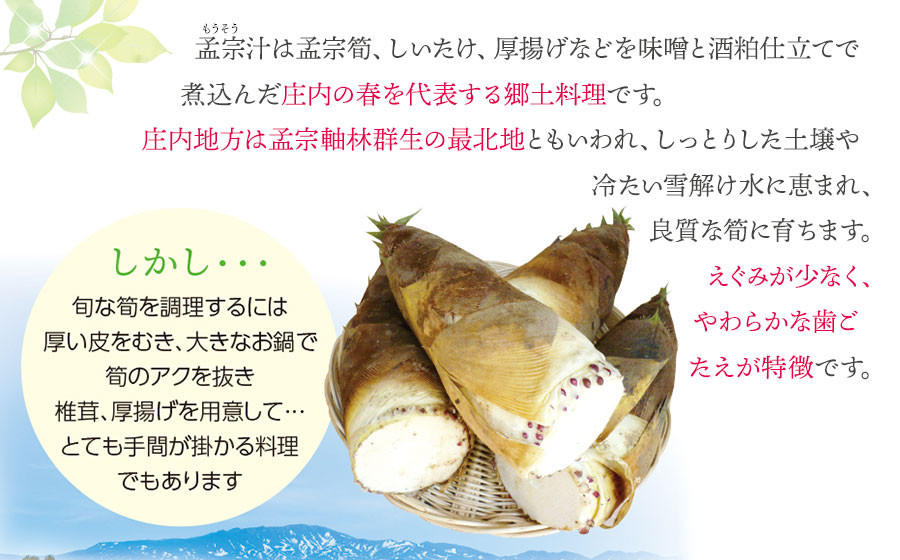 - 【令和8年発送】庄内孟宗汁セット 3~4人前 庄内観光物産館 | 山形県 鶴岡市 竹の子 筍 たけのこ 郷土料理 郷土鍋 味噌と酒粕仕立て 春 旬