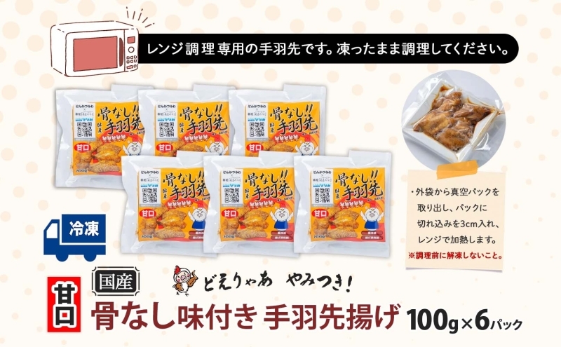 骨なし 味付き 手羽先揚げ 甘口 100g 6袋 とんかつみわ 鶏肉 唐揚げ 甘辛 名物 濃厚ダレ ボリューミー ジューシー お取り寄せ 手土産 お土産 贈り物 おつまみ BBQ 真空パック 時短 おかず 国産手羽先 送料無料 愛知県 あま市