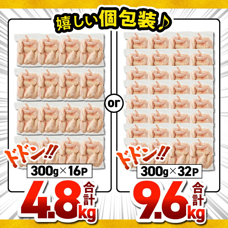 - 【ふるさと納税】<選べる容量> 鹿児島県産 若鶏 手羽先 4.8kg or 9.6kg セット 鶏肉 鶏 肉 手羽 小分け からあげ 甘辛ダレ 便利 料理 冷凍 ハピネス 鹿児島 鹿屋市 おすすめ ランキング プレゼント ギフト