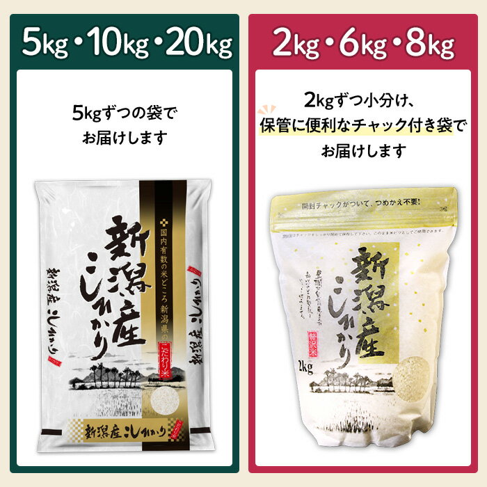 - 【ふるさと納税】米 無洗米 定期便 2kg 5kg 6kg 8kg 10kg 20kg 小分け 新潟コシヒカリ 令和7年産 選べる容量 種類 発送回数 1回 3回 6回 12回 3ヶ月 6ヶ月 12ヶ月 新潟こしひかり 新潟 コシヒカリ 精米 白米 お米 新潟県産コシヒカリ(サンヴィリッジ新潟)
