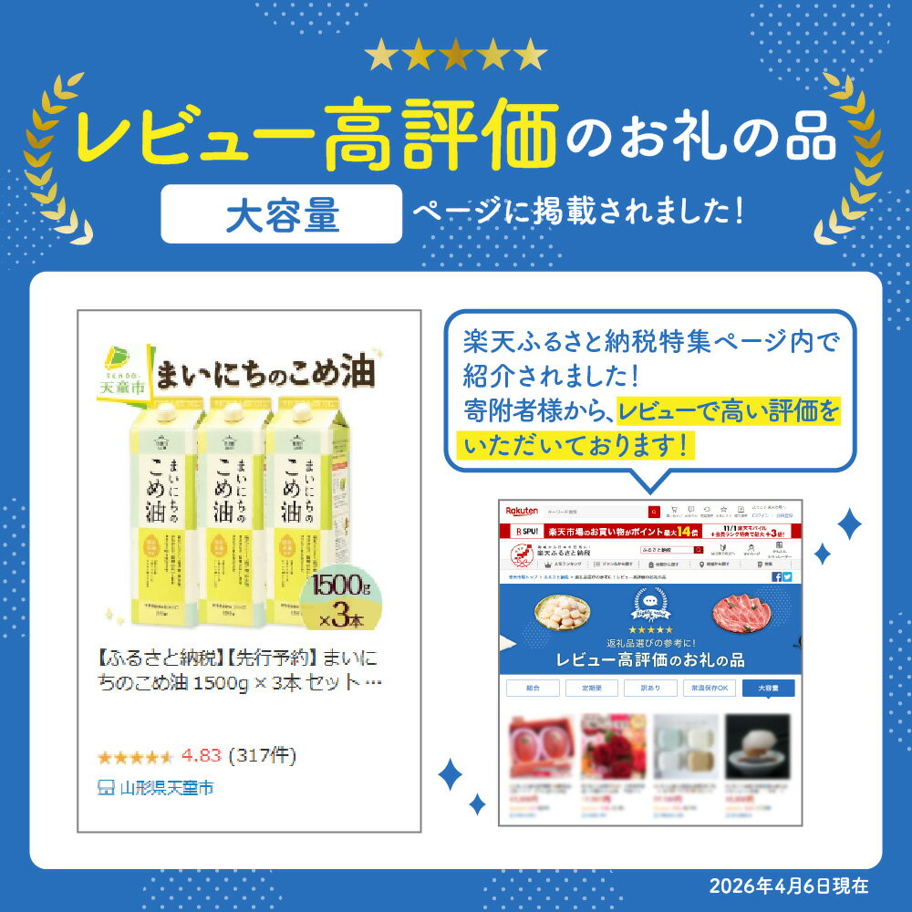 まいにちのこめ油(1500g×3本)【山形県 天童市】