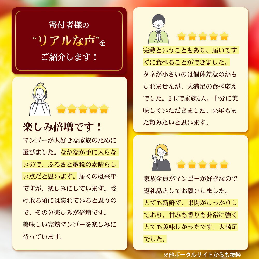 【ふるさと納税】【選べるサイズ】<宮崎県産 完熟マンゴー 4L×2玉(合計 約1kg)または3L×2玉(合計 約900g)または2L×2玉(合計 約700g)> ※2026年5月上旬~7月中旬までに順次出荷 果物 フルーツ マンゴー ギフト 贈答品 宮崎県 高鍋町【冷蔵】
