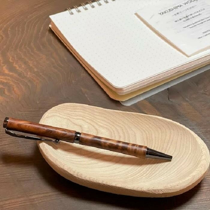 【ふるさと納税】屋久杉 回転式ボールペン(1)(ペン皿付き)<島屋工房>
