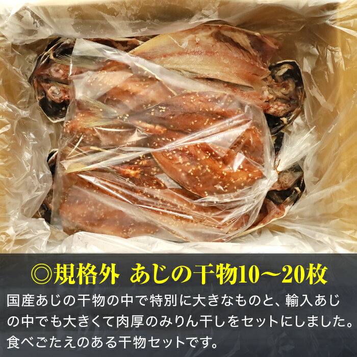 【ふるさと納税】 選べる内容量 ひもの 鯵 味醂 特大 詰合せ セット 御中元 御歳暮 10枚 20枚 伊豆 入久水産の「あじの干物とあじみりん干しが大きすぎちゃってごめんなさい」[0806213]