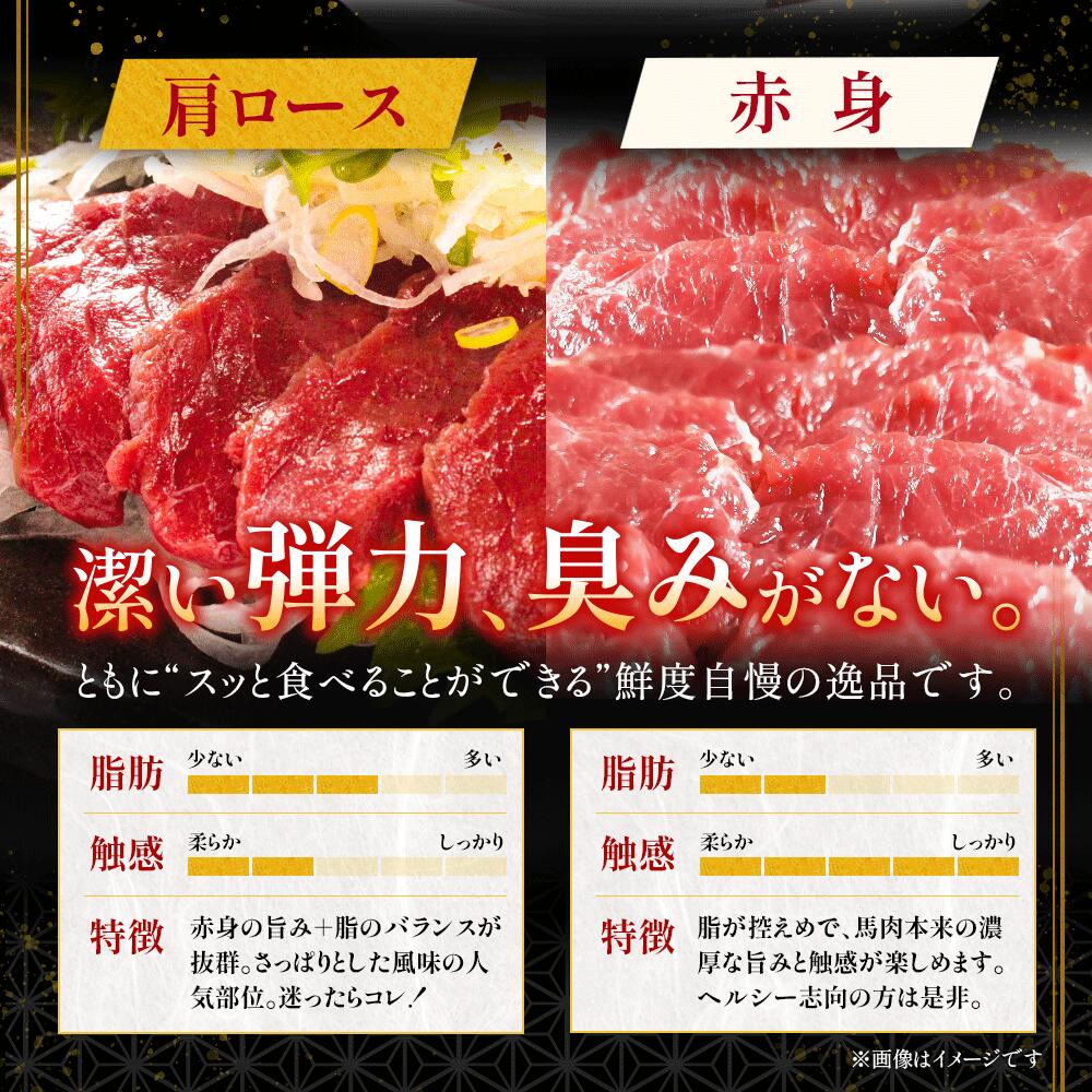 【ふるさと納税】自家牧場産 馬刺し 3種 食べ比べセット( フタエゴ 特選赤身 特選霜降り )計720g 専用醤油付き | 熊本県 熊本 くまもと 和水町 なごみ 赤身 霜降り 馬肉 食べ比べ