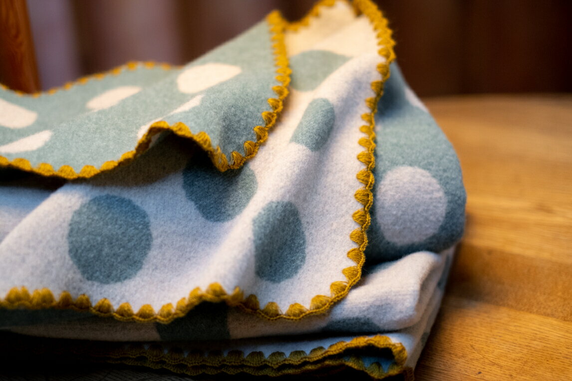 - 【ふるさと納税】マルナカ ヴィルッティ Medium グリーン&グレー2枚組 小物 寝具 ブランケット ウール 温かい 水玉模様 セット HNNAU005