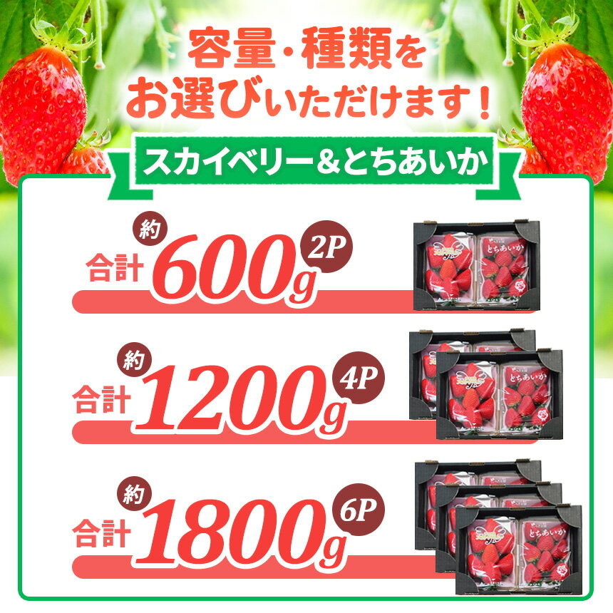 【ふるさと納税】[先行予約] いちご 2パック 「とちあいか/スカイベリー/ミルキーベリー」計約600g [2026年1月中旬から順次発送]|とちあいか スカイベリー ミルキーベリー イチゴ 苺 果物 フルーツ 日光産 栃木県産 期間限定 数量限定 [0673-0676]