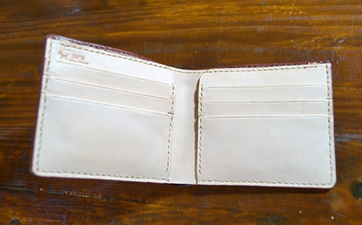 本革製二つ折り札入れ (コインケースなし)<ブラック> ハンドメイド 国産牛ヌメ革 二つ折り 札入れ 財布 本革 レザー 革製品 贈り物 ギフト 黒 ブラック F6L-287