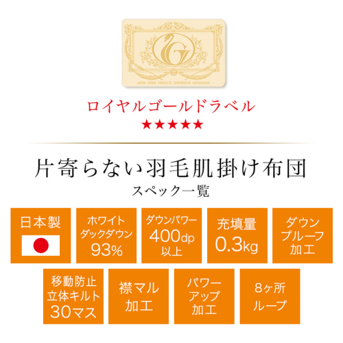 - 【柄ブルー】片寄らない羽毛肌掛ふとん ホワイトダック93% ロイヤルゴールドラベル【SL】_AG-J202-bl