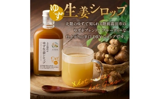 - ゆず生姜シロップDRY 200ml 2本 無農薬栽培 添加物不使用 自家製生姜 てんさい糖 常温 岩手県奥州市江刺産 [T0024]