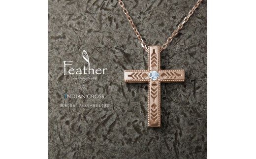 K18PG フェザークロスネックレス インディアンジュエリー アクアマリン 180807w-birth-k18-pg-aq