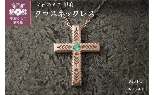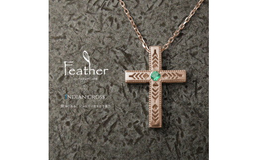 - K18PG フェザークロスネックレス インディアンジュエリー エメラルド 180807w-birth-k18-pg-em