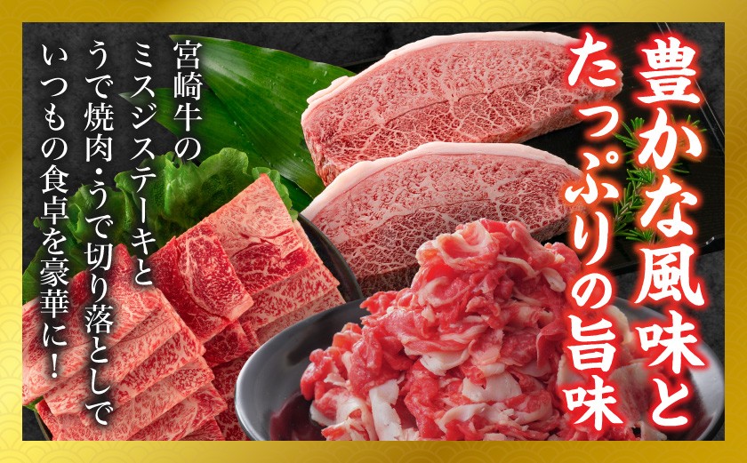 - 【和牛枝肉共励会牛】(A5)宮崎牛うでバラエティセット_21-25-010_(都城市) 宮崎県 宮崎牛 ウデ 肩 ミスジ ステーキ 焼肉 切り落とし 真空 品評会出展牛 特別セット