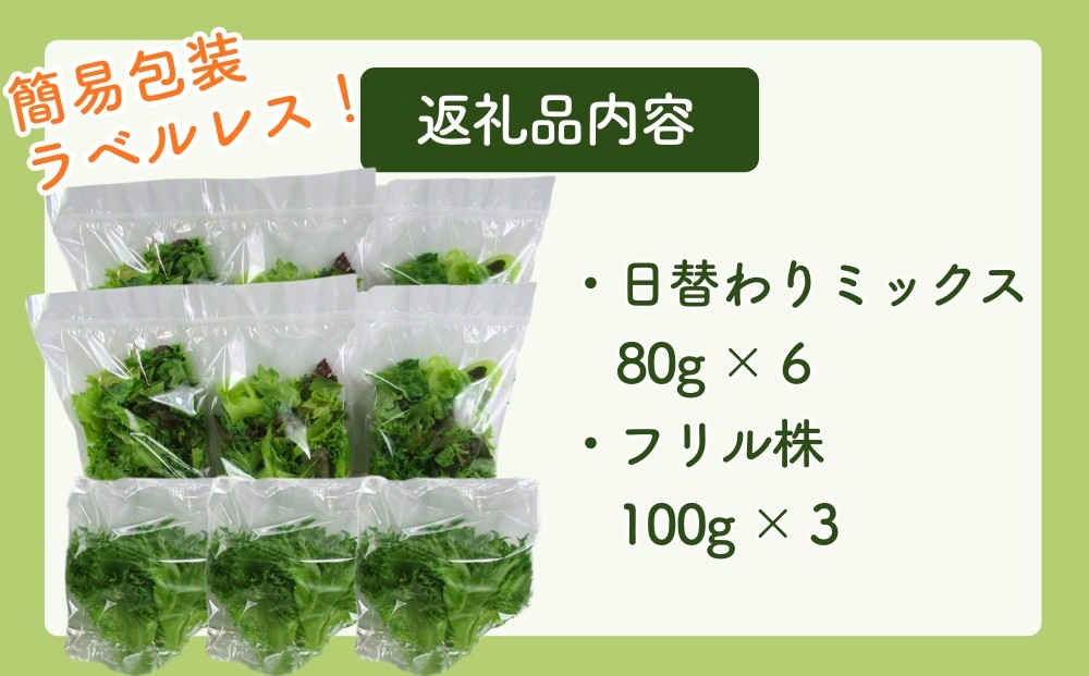 - 野菜 詰め合わせ レタス ベビーリーフ【洗わずそのまま食べられる】【栽培期間中農薬不使用】【日本テレビ『news every.』で紹介!】 合計9袋((80g)×6、(100g)×3 ) おまかせセット 小分け フリルレタス ルッコラ レッドオーク 赤茎水菜 わさび菜 サンゴかいわれ 簡易包装 水耕栽培 LED 栽培 ベジタブル お得な中容量セット B 東松島ファーム