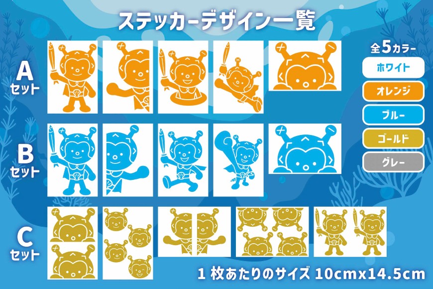 海の子 ホヤぼーや カッティングステッカー 5枚入 [コスモサイン 宮城県 気仙沼市 20565997] シール ステッカー 雑貨 ゆるキャラ ご当地キャラクター かわいい ホワイト オレンジ ゴールド ブルー グレー