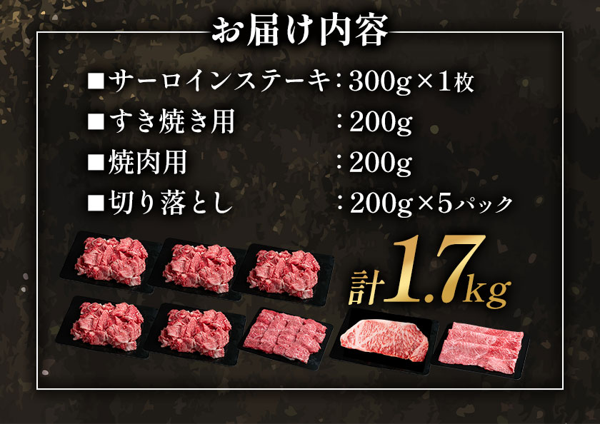- 【ふるさと納税】牛肉 肉 鹿児島県産北さつま 高崎牛 お肉三昧セット 計1.7kg ステーキ 焼肉用 すき焼き用 切り落とし 有限会社 太田家 《30日以内に出荷(土日祝除く)》 お肉 牛 焼肉 すき焼き 牛丼 鹿児島県 さつま町