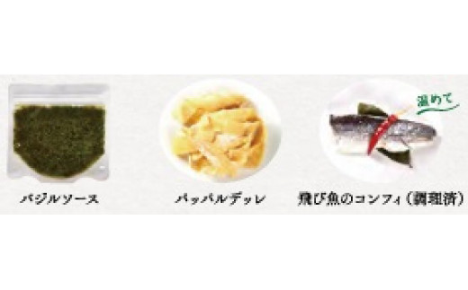 - <屋久島パスタラボ>屋久島産バジルとにんにくのジェノベーゼ 飛び魚のコンフィ添え<一人前>