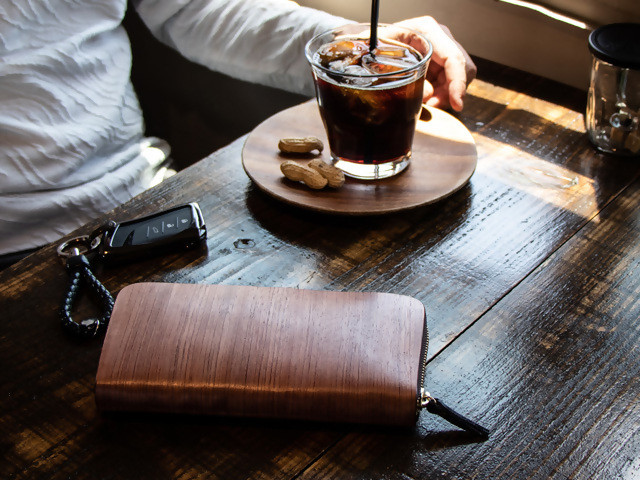 DearwooD 木の財布(チェーン:ゴールド/チャーム:レッド)