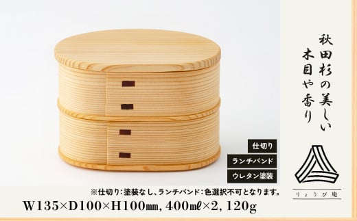 - 【大館曲げわっぱ】 いろどり弁当(小)二段&ランチバンドセット 225P6008 / 曲げわっぱ 伝統 工芸品 お弁当箱 弁当箱 わっぱ弁当 わっぱ弁当箱 日本製 made in Japan 秋田杉 木 軽量 シンプル 職人 贈り物 贈答品 ギフト プレゼント 記念日 誕生日 祝い 東北 秋田 大館 ランチバンド