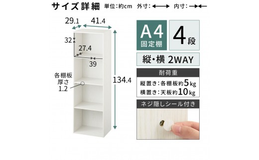 - 【完成品でお届け】カラーボックス〔4段〕(ホワイト)カラーボックス 4段 A4 横置き 縦置き 収納棚 おしゃれ 本棚 大容量 スリム ラック 棚 オープンラック 木製 ミニ 省スペース 隙間 AKANBR920128-0-WH