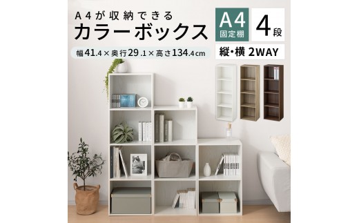 【完成品でお届け】カラーボックス〔4段〕(ホワイト)カラーボックス 4段 A4 横置き 縦置き 収納棚 おしゃれ 本棚 大容量 スリム ラック 棚 オープンラック 木製 ミニ 省スペース 隙間 AKANBR920128-0-WH
