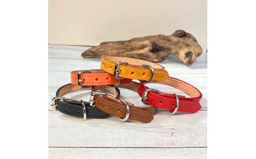 - 選べるサイズの 本革 犬 ・ 猫用 首輪 (15㎜幅) 小型 / 中型 / 大型 【イタリア革ブッテーロ】 ブッテーロ Mサイズ 黄色