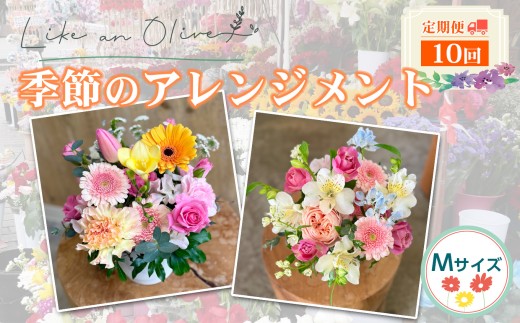 - 【定期便】アレンジメント【M】(毎月定期便) 【選べる回数:10回】【フラワーアレンジメント アレンジメント 季節の花 生花 花 植物 ブーケ ギフト プレゼント インテリア お楽しみ 】