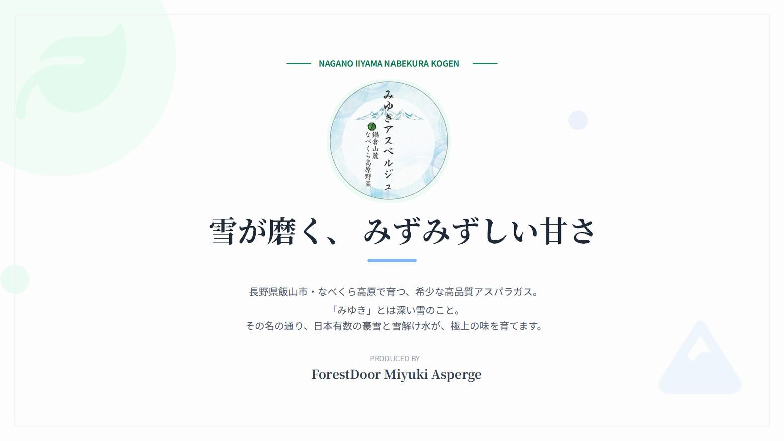 【期間限定】アスパラガス みゆきアスペルジュ Mサイズ 2kg入り(70〜80本)《出荷時期:2026年5月中旬頃〜》株式会社ForestDoor|長野県 飯山市 信州 新鮮 直送 独自栽培 甘さ 高級 ギフト (Ce-007)