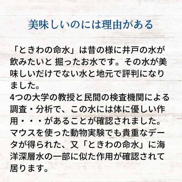 - 水 ミネラルウォーター 市場の目利きが選ぶ名産品『ときわの命水』 20L(バックインボックス10L×2箱) | 飲料 水 ミネラルウォーター 南アルプス 地下100m 汲み上げ モンドセレクション iTQi 受賞 伊那市 長野県【015-47】
