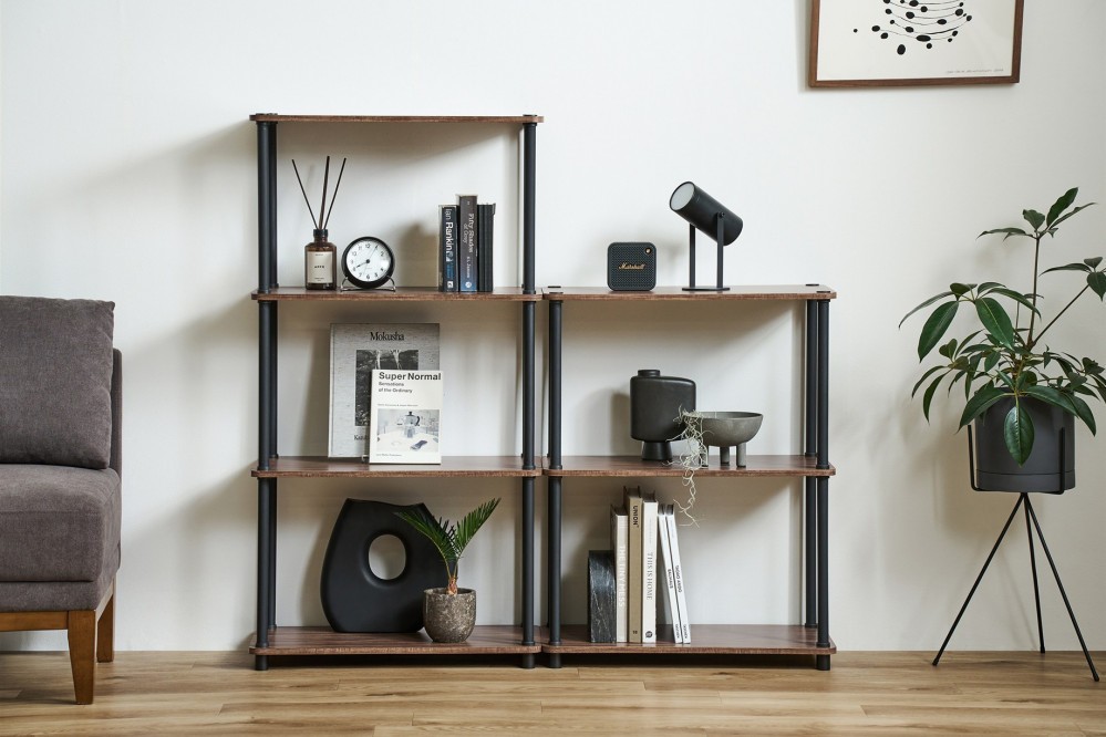 組立簡単スチールポールラック 4段ラック SPRー4R590 ウォールナット/ ブラック