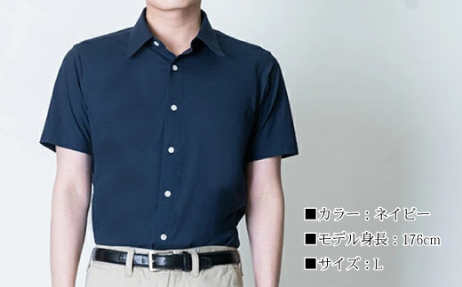 - 26-944.「清流 SHIMANTO JAPAN」接触冷感 半袖シャツ 日本製【カラー:ネイビー/サイズ:M~LL】SHKS23-034