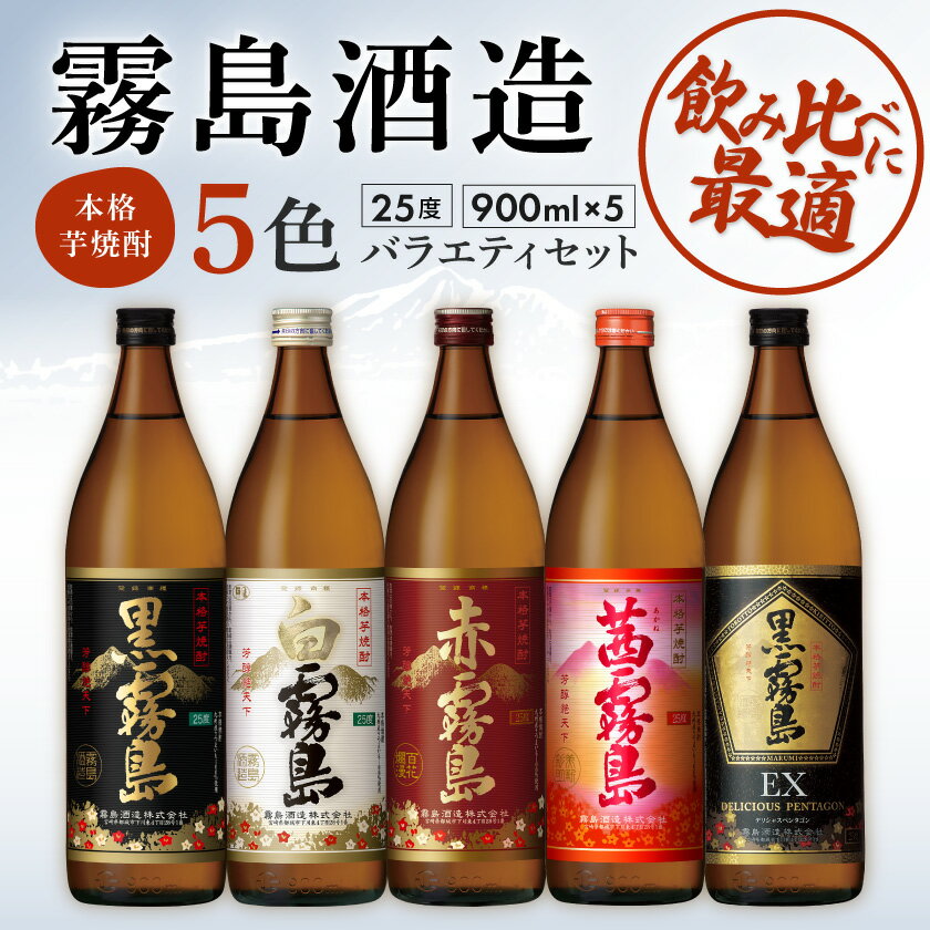 - 霧島酒造 900ml 5色バラエティセット - 霧島酒造 黒霧島EX/茜霧島/赤霧島/黒霧島/白霧島 本格芋焼酎 25度 900ml瓶×5本セット 5合瓶 本格焼酎 いも焼酎 送料無料 MJ-3804【宮崎県都城市は令和2年度ふるさと納税日本一!】