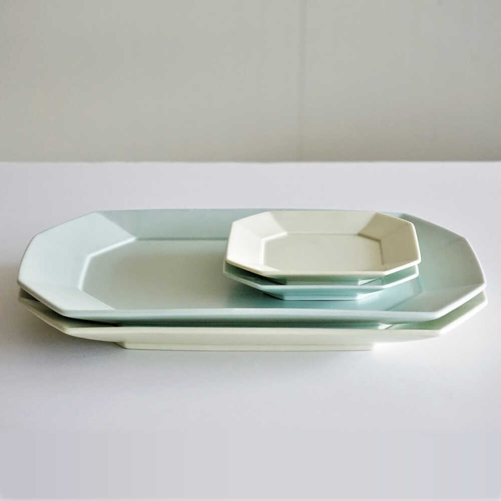 - 【ふるさと納税】【波佐見焼】角 プレート 4枚セット 2サイズ(S・L) × 2色(ミントブルー・アイボリー)【永峰製磁 eiho】 [RA39]