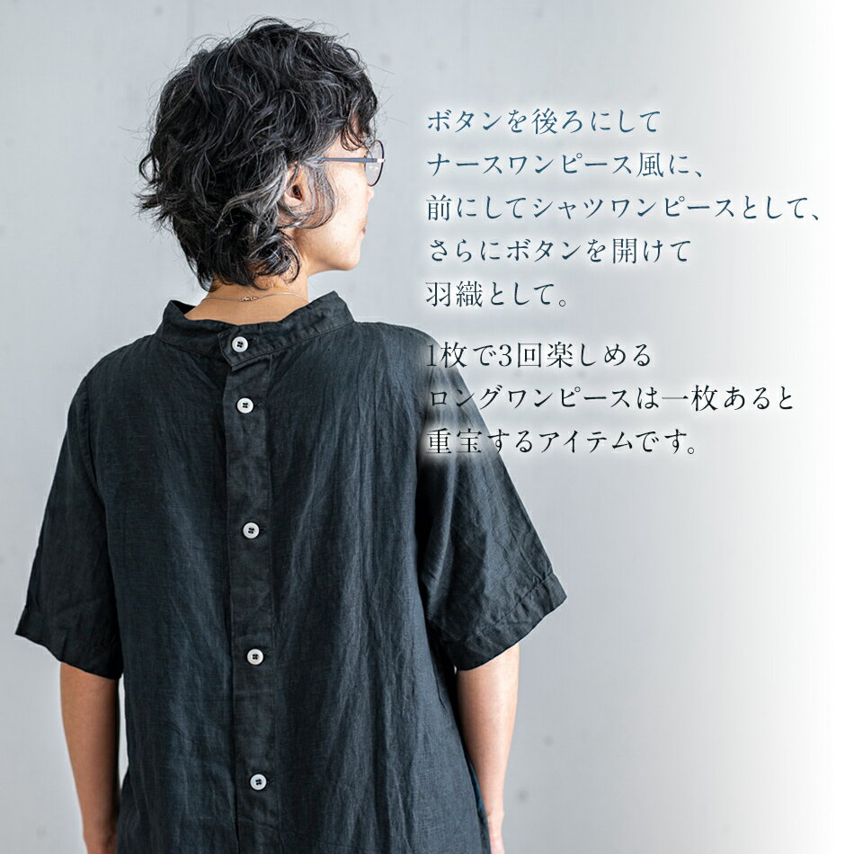 - 【ふるさと納税】ワンピース リネン シャツワンピース 手染めリネン2wayワンピース サイズ2 BLACK 泥藍染 ブラック リネン リネンワンピース 羽織 前後どちらでも着られる 2way 天然染料 AO067