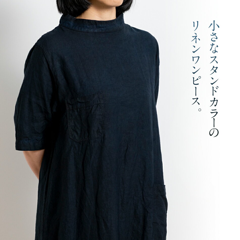【ふるさと納税】ワンピース リネン シャツワンピース 手染めリネン2wayワンピース サイズ2 BLACK 泥藍染 ブラック リネン リネンワンピース 羽織 前後どちらでも着られる 2way 天然染料 AO067