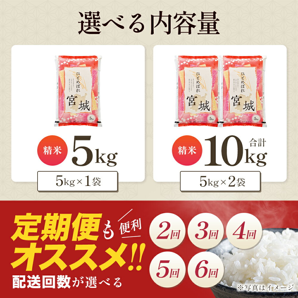 - 【ふるさと納税】【令和7年産】宮城県 色麻町 ひとめぼれ 精米 5kg・10kg 選べる 定期便 2か月 3か月 4か月 5か月 6か月 半年 米 こめ コメ 【04444-0001~12】 食品 グルメ ギフト 贈り物 人気 5キロ 10キロ 送料無料 お米マイスター 三ツ星■