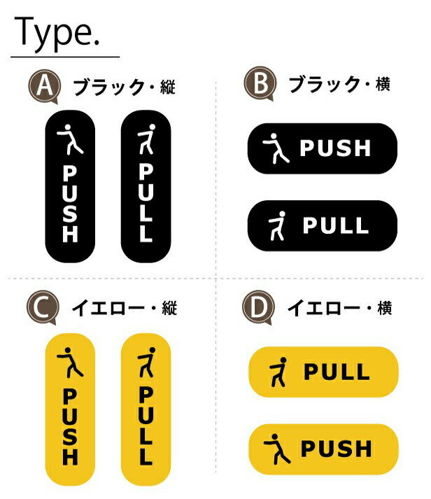 【ふるさと納税】PUSH PULL ステッカー シール 押す引く 押引 ドアプレート サイン セット販売 艶消しブラック 黒 イエロー 黄色 ドアサイン プッシュ プル おしゃれ 壁や扉 防水 日本製 屋外対応 シール式 メール便 送料無料
